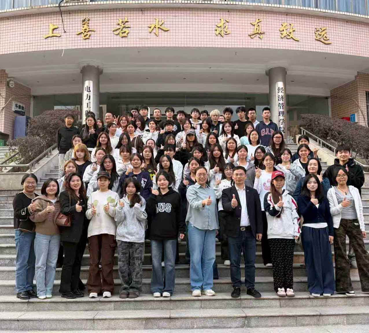企业家进校园 梦想是进行职业规划的基本点,拥有一个梦想对于个人的成长和发展至关重要,它可以为我们的人生提供方向和目标,激发潜能,增强自信,提高逆境适应能力,以及促进个人的创新精神和能力。为了帮助同学们早日认清定位,做好职业规划,顺利完成大学学业,早日进入行业。商学院特邀长沙市跨境贸易协会创始会长黄仁华在城南校区开展见面交流会。24级国贸1、2班参加会议,商学院院长王朝晖,学工办刘轩昂老